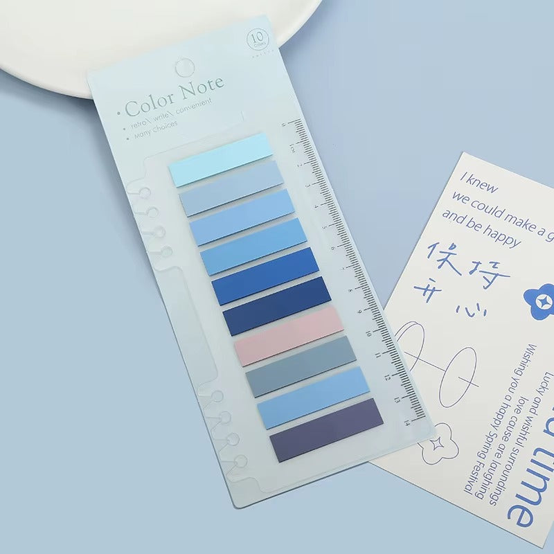 Juego de notas adhesivas con regla para estudiantes, pegatinas de índice, Bloc de notas, marcadores de página, accesorios de oficina, 10 colores
