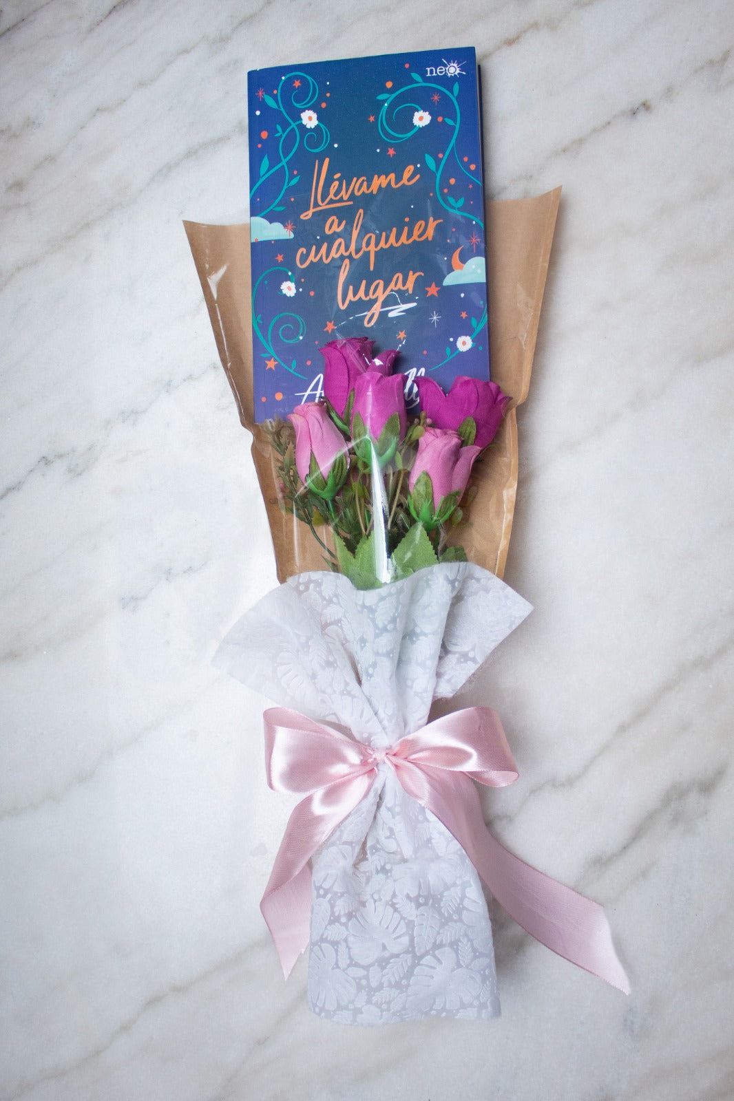 Nota: (En este ramo solo cabe un libro) El libro de la foto no está incluido, pero puedes elegir el que quieras y convertirlo en el complemento perfecto para este hermoso ramo por un monto extra, que es el precio del libro que desees agregar.
