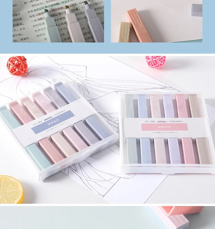 Juego de rotuladores fluorescentes de estilo breve, Resaltadores de colores Pastel, rotuladores artísticos de papelería de regalo, 6 unids/set