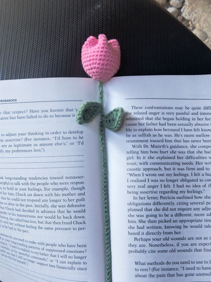 Este delicado tulipán tejido añade frescura y color a tus libros. Perfecto para quienes disfrutan detalles minimalistas.